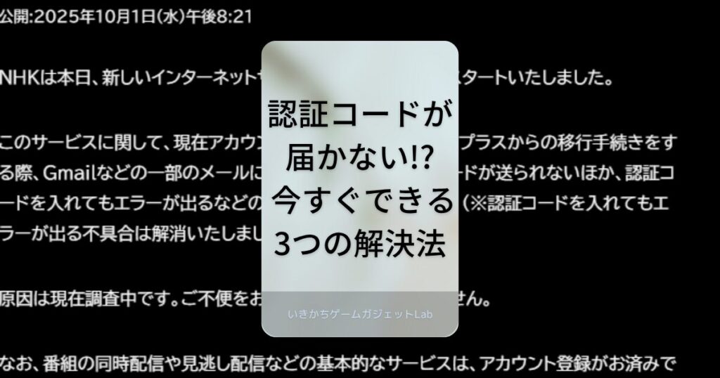 どうも、ニコイチです。2025年10月からスタートしたNHKの新しいインターネットサービス「NHK ONE」。ワクワクして登録を進めていたのに―― 👉「認証コードがメールで届かない!」 そんなトラブルに直面して、不安やイライラを感じている方が急増して... -