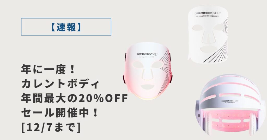 【速報】カレントボディ年間最大20%OFFセール!クーポン「FANCB」必須!4-in-1マスクや育毛ヘルメットを“最安値”で手に入れるチャンス到来!