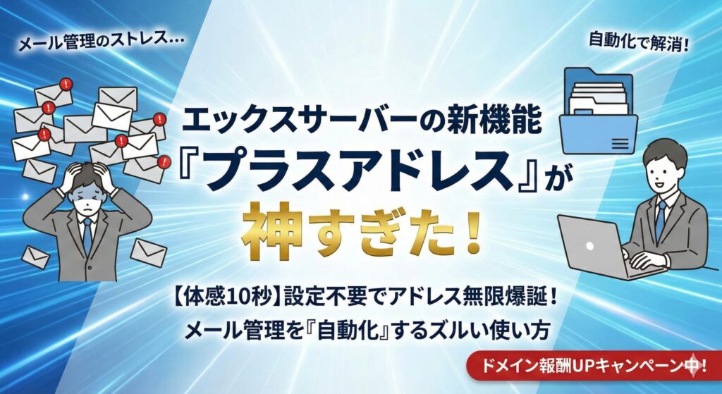 【体感10秒】エックスサーバーの新機能「プラスアドレス」が神すぎた。メール管理のストレスを「自動化」するズルい使い方
